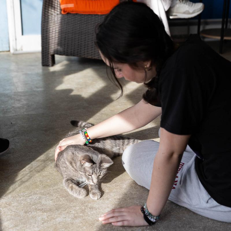 Of course a cat cafe wouldn't be complete complete without cats! What makes the cat side of our business so incredibly special is that it's centered around our non-profit foundation, IndyAdopts. IndyAdopts was founded in 2021 by the second set of owners to support the cats we foster at the cafe. When you buy from our cafe and reserve time in our lounges, you aren't just supporting one local business; you are supporting multiple rescues and shelters in the area, providing comfort and care to numerous cats, and helping us with our mission of reducing burden of overcrowding on our local shelters.